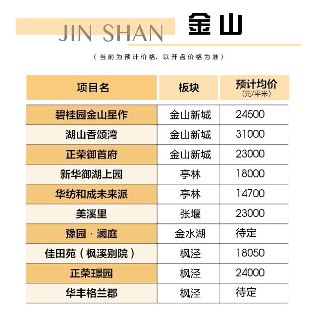金山区,10个新盘,纯新盘2个!