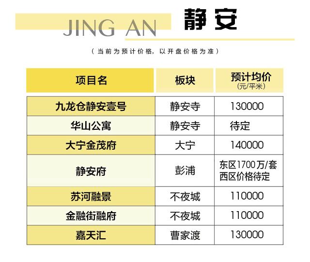 2018年静安共有7个新盘!