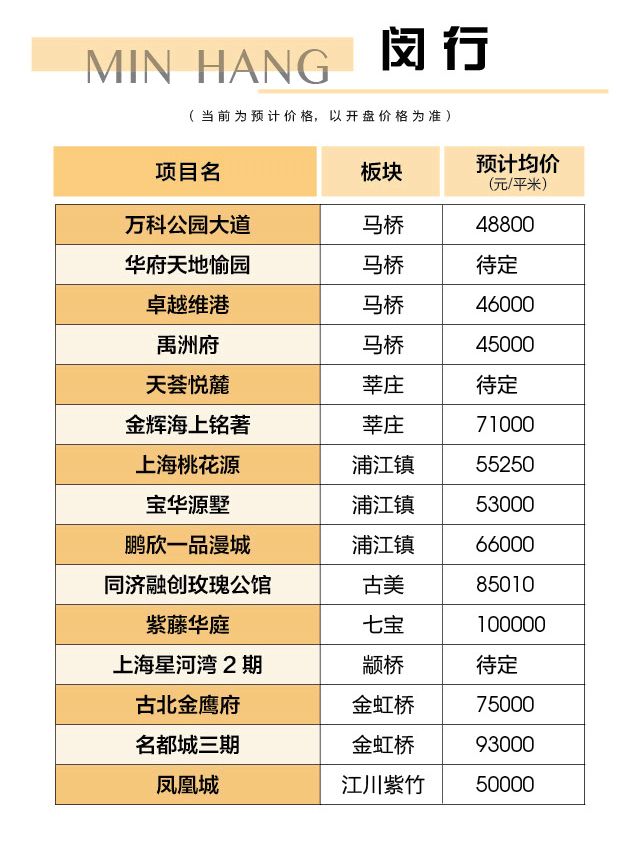 闵行区,17个新盘,纯新盘6个!