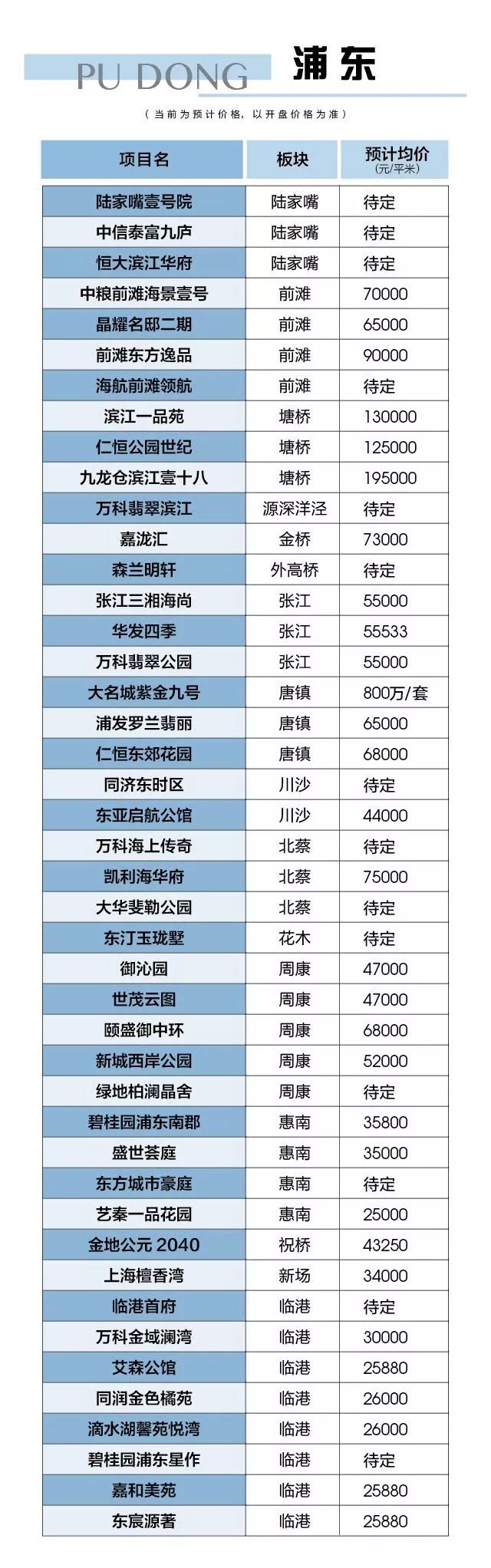2018年上海各区较新开盘房价大全,快看看你买得起哪?