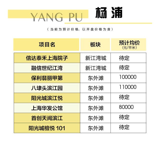 杨浦区,8个新盘!