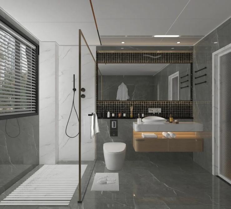 极窄线型电器,与大板吊顶优质适配,构筑整洁无暇的卫浴空间。