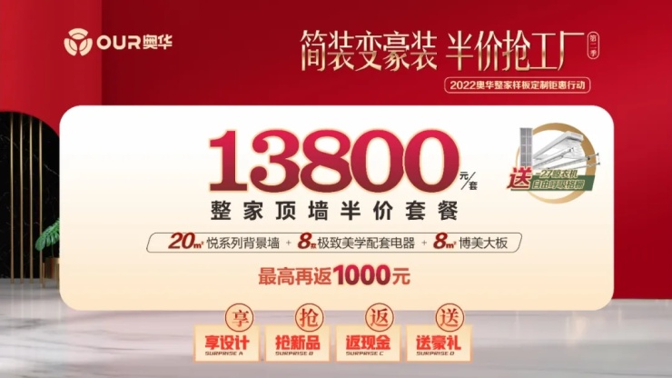 奥华用颜值、质量兼备的顶墙定制好物,空前钜惠的超低折扣,精美实用的礼品,为消费者们开启了一场嗨购盛宴。