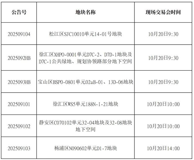 10月17日晚,上海土地市场正式发布第八批次土拍现场交易活动安排的通知,具体时间如下: