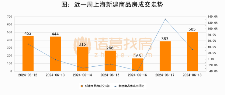 【上海成交日报】06月18日新房成交505套;涨价房源208套