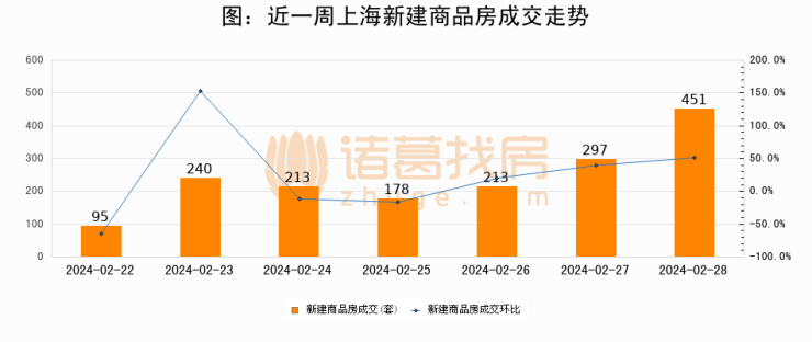 【上海成交日报】02月28日新房成交451套;涨价房源285套