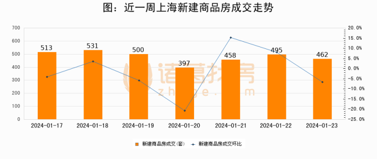 【上海成交日报】01月23日新房成交462套;涨价房源124套