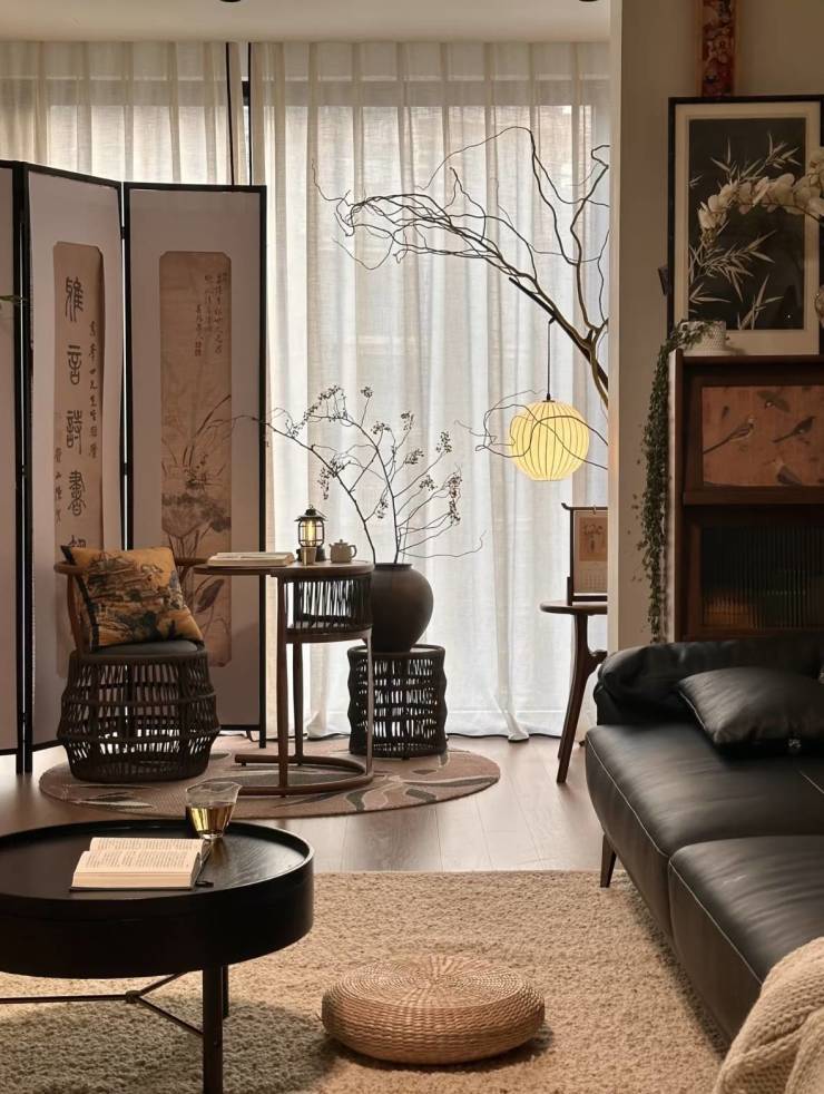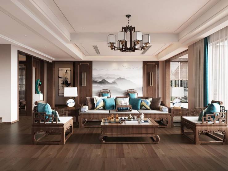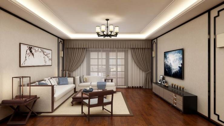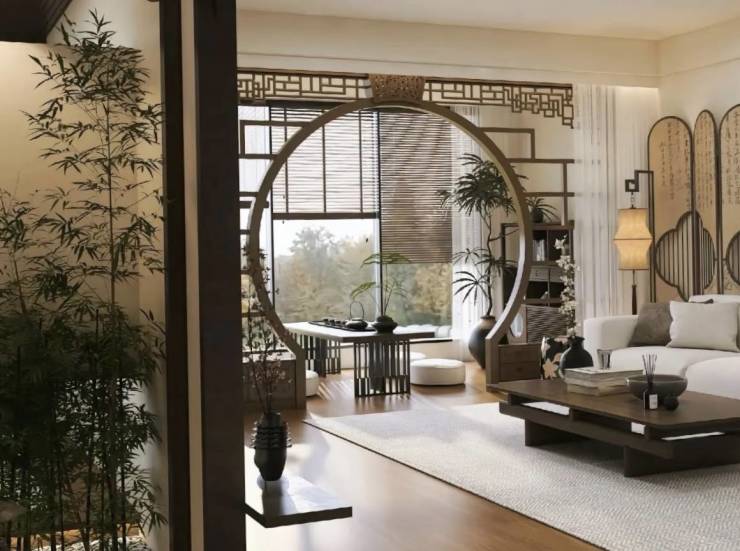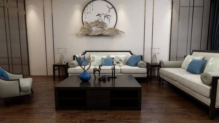 在装饰上,适量添加一些中国传统元素,如挂山水画、放置几件青花瓷等,这些细节可以增添空间的文化氛围。同时,通过布艺、窗帘等软装来调节空间的色彩和质感,增加居住的舒适度。