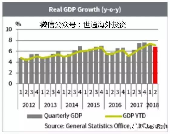 从2014年第2季度,越南经济实现强劲增长,国内生产总值增长7.08%,为2011年以来的六个月增长较高水平,其中排名前列季度为7.45%,2018年排名前列季度为6.08%。