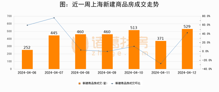 【上海成交日报】04月12日新房成交529套;涨价房源145套