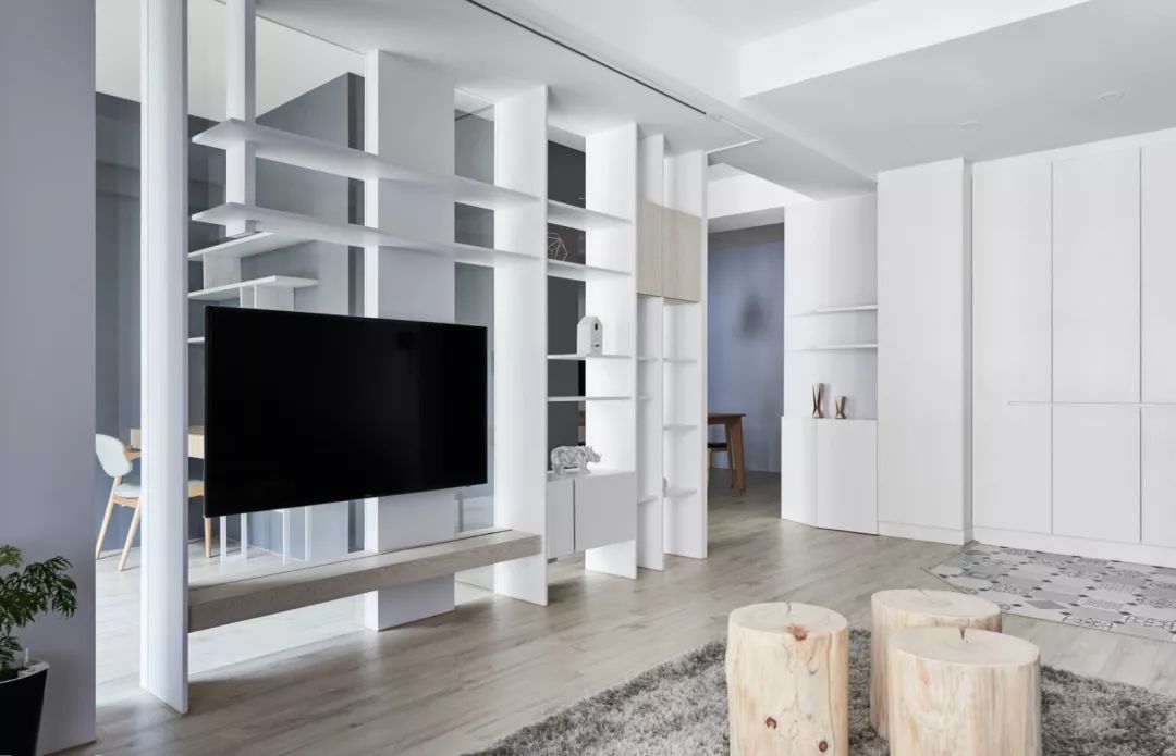 100㎡现代风,屏风电视墙,木桩做茶几,好大胆的设计!
