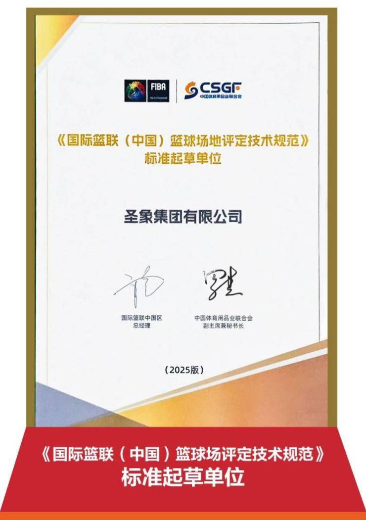 2025年5月22日,圣象深度参与《国际篮联(中国)篮球场地评定技术规范》标准起草工作,推动中国运动场地设施向规范化、专业化迈进,彰显品牌在体育产业中的技术实力与行业影响力。