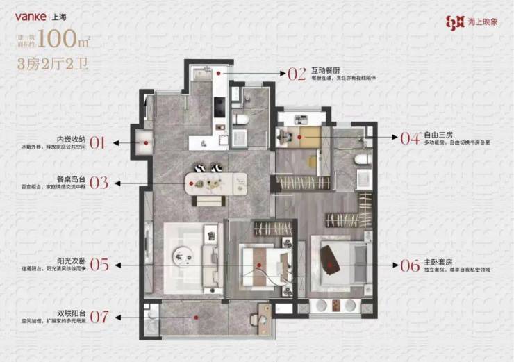 松江新城核心印象城旁2023万科上海映象系红盘万科·海上映象三期开启认购建面约100-130㎡3房即将加推均价56632元/㎡认购时间:1月19日9时至1月23日12时认购金:60万元建面约100㎡3房2厅2…