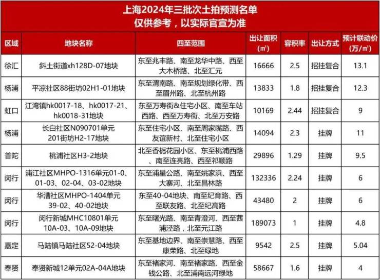 回顾:三批次土拍预测名单曝光!徐汇滨江、杨浦平凉地块将入市