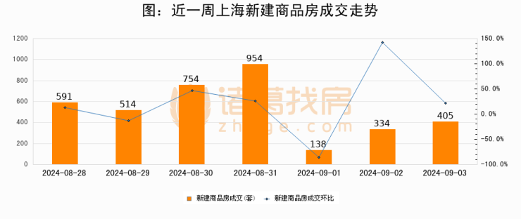 【上海成交日报】09月03日新房成交405套;涨价房源109套