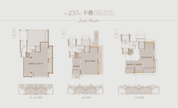 下叠二层主打舒适奢华,三间卧室均拥有宽绰尺度,其中主卧面积突破建面约50㎡,配备270°转角飘窗、豪华主卫及步入式衣帽间,完美承载品质生活想象。