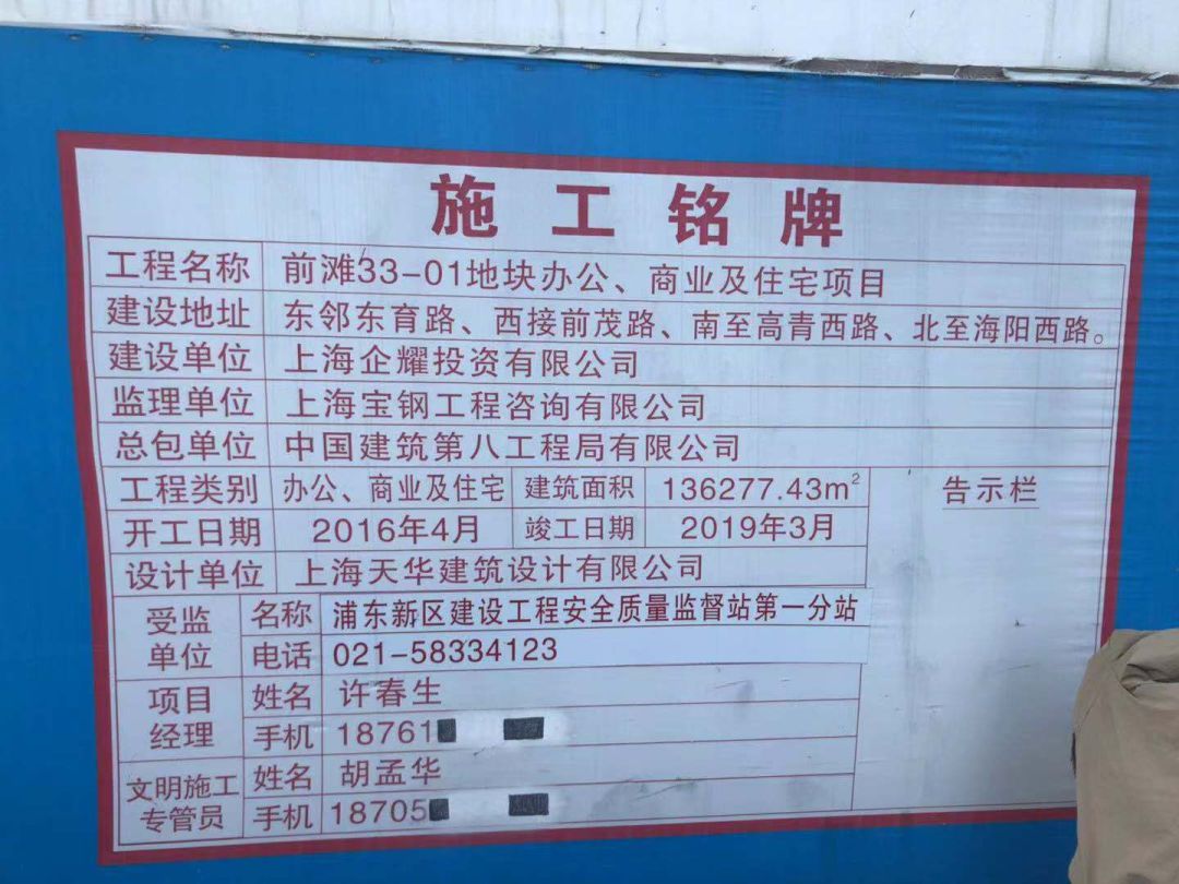 从施工铭牌来看,项目由上海金耀投资有限公司建设,预计于2019年3月竣工。