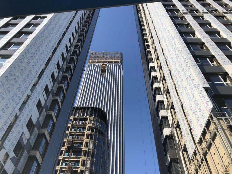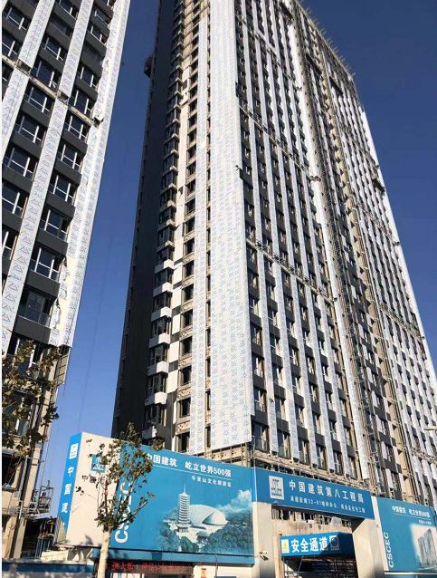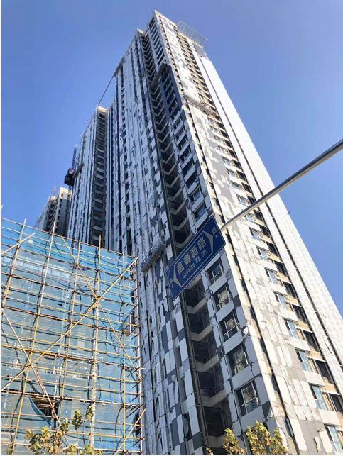 目前,小区住宅两栋楼已经封顶,且外立面基本完工,正在进行内部建筑及装修。