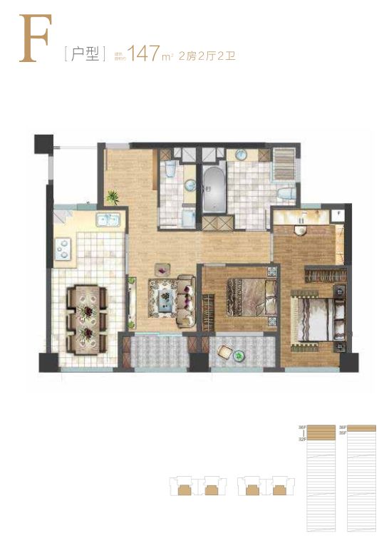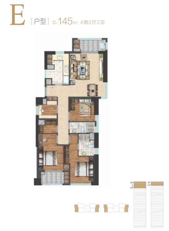 按照网上信息,项目两栋住宅楼,总高36层,分为两个单元,均是两梯五户设计。