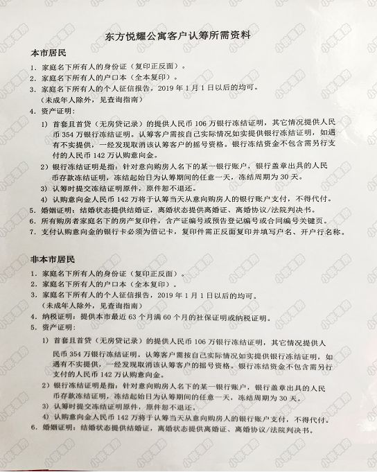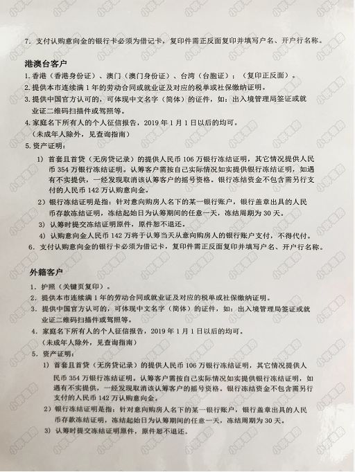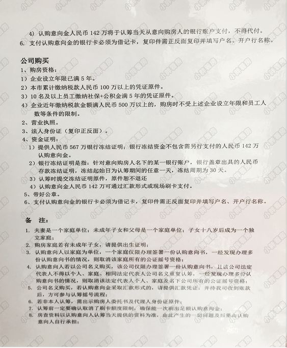 意向认筹金额:人民币142万元,另需提供为期30天的银行资金冻结证明106万(首套)或354万(二套),冻结起始日为认筹期间的任意一天。