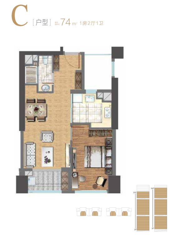 总体来讲,项目户型多元,选择性较多,而且由于面积比较小,入住前滩的门槛较低。