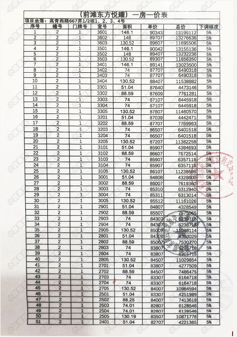 前滩东方悦耀完整一房一价表&详细认筹规则
