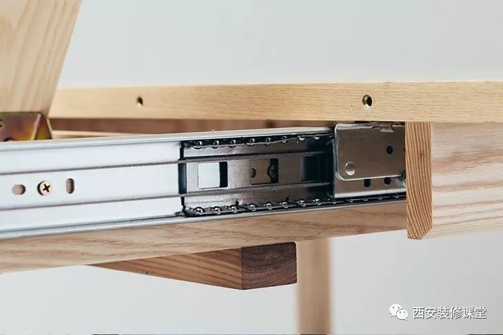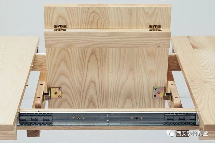 桌面底部暗藏机关,设计复杂精巧,空间自此得以延展。