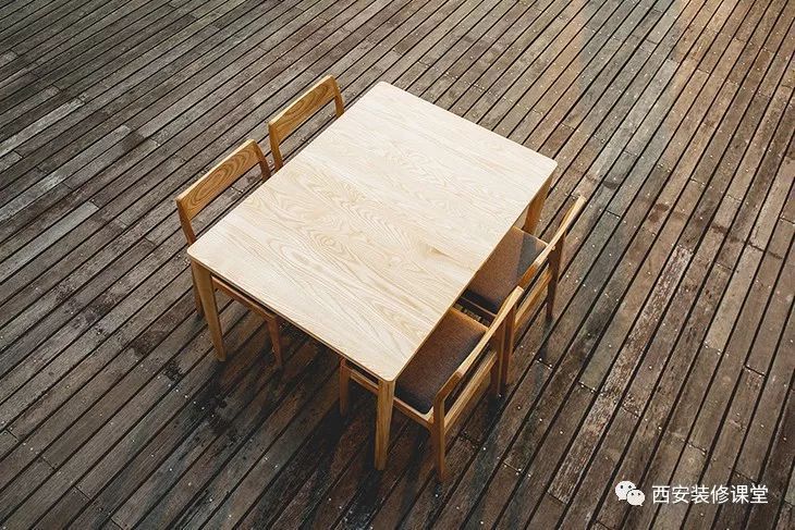 桌面采用开放式清漆处理,露出自然流畅的木质纹理,让家居用餐环境离自然更近一步。