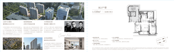 建面约110㎡边套(B1户型),1个宽面阳台、5个飘窗,整体南向面宽做到了约12.3米,大横厅面宽约5.4米,带来超大空间体验和充足通风采光。更为难得的是,该户型标配了全屋飘窗,主卧更是拥有270°转角飘窗,拓宽室内景观视野的同时,增加了实际空间使用率,加上三玻两腔系统窗隔音,在欣赏窗外景色的同时,也不会被噪音打扰。建面约110㎡中间套(B2户型),也同样做到了南北通透,三开间朝南,洄游动线,布局合理,无论是空间尺度还是通风采光,与边套享受一样的品质感!