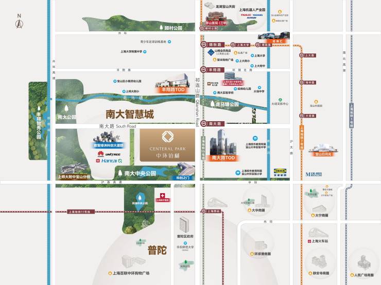 立体交通路网,高效出行无忧中环铂樾坐拥15号线南大路站(直线约300米),真正实现“地铁到家”的便捷生活。从这里出发, 4站畅达上海西站(新房均价9万+/㎡)、5站轻松抵达铜川路(新房均价10万+/㎡)、9站直达娄山关路(新房均价13万+/㎡),轻松串联城市核心板块。此外,15号线更可快速换乘2/7/11/13/14号线,无缝衔接大宁、虹口、陆家嘴等繁华商圈,商务出行、休闲娱乐皆高效无忧。