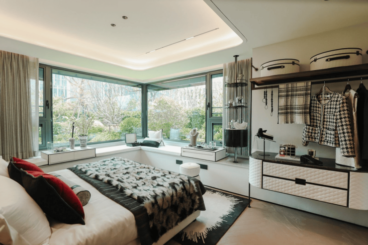 建面约139㎡4房户型,套数不多,但产品力绝对惊艳。四开间朝南,约15.05米宽的南向横厅、约1.6米进深的奢阔阳台,中环顶级享受的既视感。主卧约4.45米的进深,约4米大面宽(含飘窗),配合270°转角飘窗,是目前市面上产品力高配的户型之一,值得一冲!