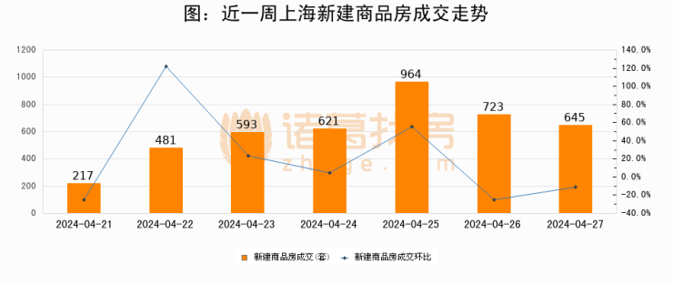 【上海成交日报】04月27日新房成交645套;涨价房源140套