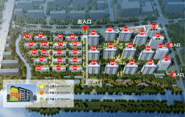 总体布置各具特色,叠拼区静谧雅致,高层区坐拥中央花园,水岸江景。周边配置完善的社区配套以及沿街活力商业街区,提升了社区的品质、舒适。
