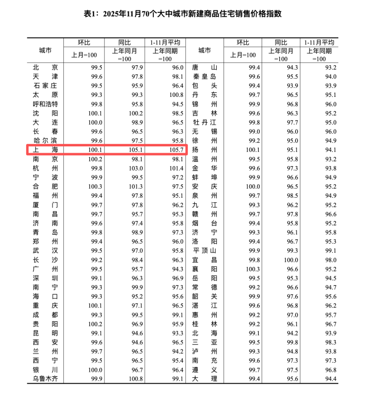 数据显示,11月份,70个大中城市中,各线城市商品住宅销售价格环比总体下降、同比降幅扩大。