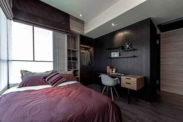 次卧是一个功能间,空间既有的畸零凹嵌规划为衣物收纳,右侧的隐藏式门扇,在廊道底端藏起客用卫浴动线,也是一处宁静的休憩区域。