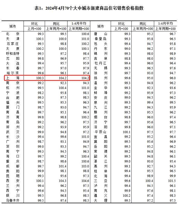5月17日,国家统计局发布《2024年4月份70个大中城市商品住宅销售价格变动情况》。