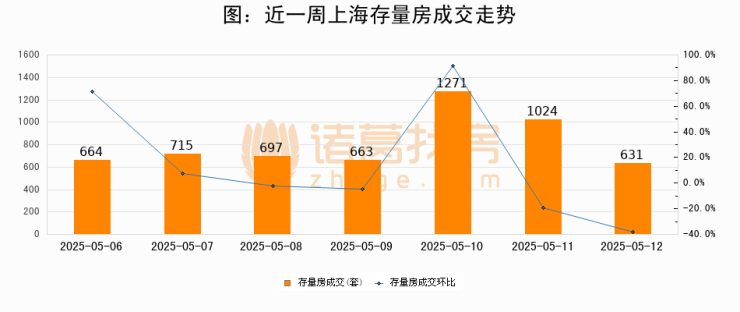 【上海成交日报】05月12日二手房631套;涨价房源66套