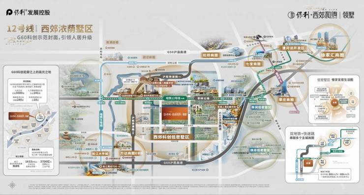除了低密稀缺的过人之处外,领墅建档的热度之所以超越市场预期,究其外因,离不开“繁华与繁花共舞”的外部城市界面。保利·西郊和煦所领墅,所在的西郊洞泾别墅区,排布了约2平方公里绿地及低密墅区、一轴汇聚千亿GDP的科创龙首,正位于保利·西郊和煦|领墅的联通全球的十字路口,板块未来将导入数以万计的精英人口。