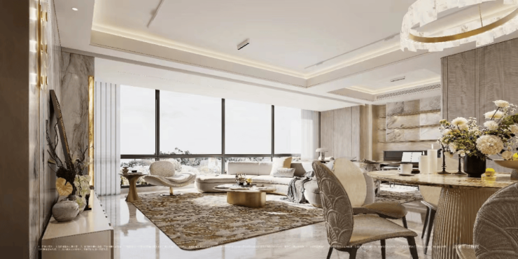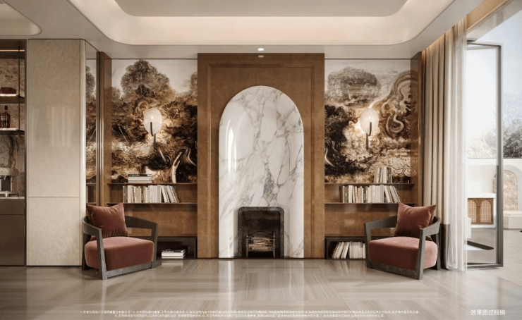 据悉,作为项目的升级迭代的最大亮点,项目约1100m²滨水下沉式会客厅,未来将集合私宴、健身、休闲、阅读等多重功能于一身,同时,通过绿意隐奢的高定质感、精细化奢材立面景墙等元素的运用,也将为墅居圈层呈现出尊属的私密性与仪式感。