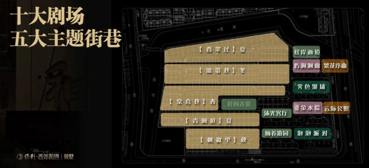 在传承嘉佩乐酒店贵重质感的同时,领墅利用滨水环绕的特点,规划有“双轴/五巷/十剧场”的景观布局,以更为阔尺的空间感焕新打造墅区的主题园境,涵盖自然亲子、乐活健身、生态颐养等维度,满足全龄客群所需。