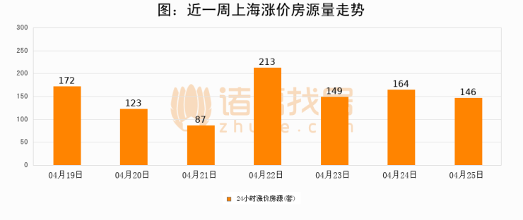 根据诸葛找房数据显示,上海24小时涨价房源量为146套,较04月24日减少18套,环比下降11%。与此同时,涨价房源占比小幅回落,对于购房者来说是一个入市窗口期,购房者可抓住时机入市。