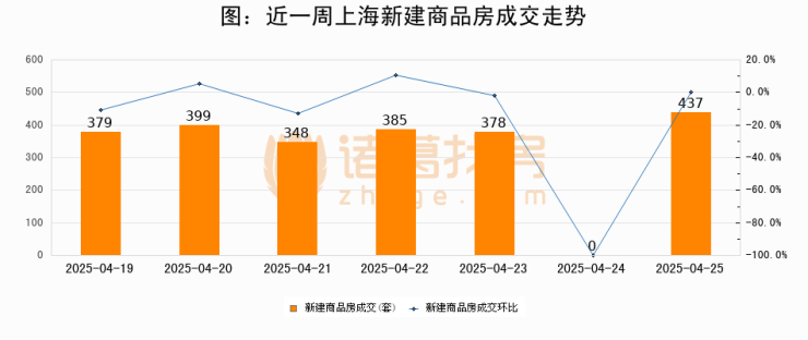 【上海成交日报】04月25日新房成交437套、二手房750套;涨价房源146套