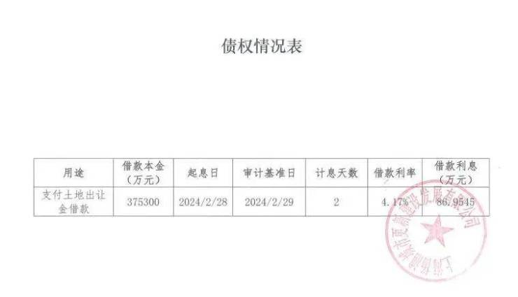 重大债权债务事项方面,本项目转让方对标的公司借款本金为375300万元,至评估基准日的借款利息为86.9545万元,合计375386.9545万元。借款年利率4.17%。