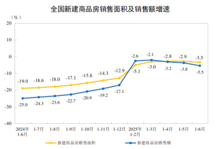 国家统计局:上半年全国新建商品房销售额44241亿元,同比下降5.5%