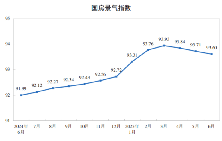 6月份,房地产开发景气指数(简称“国房景气指数”)为93.60。