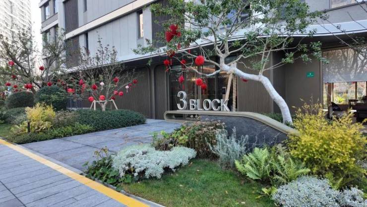 每栋楼的单元入口,经过精心设计与升级,通过组合式绿植与精选造型树搭配,不仅优化了视觉效果,更强化了归家动线的仪式感与识别度。