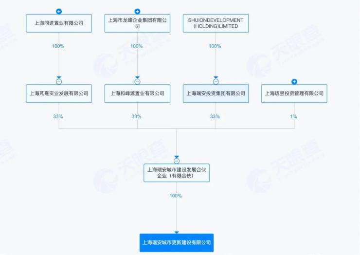 据天眼查,上海瑞安城市更新的三个大股东分别是瑞安、龙峰(古北壹号的开发商)以及同进置业。