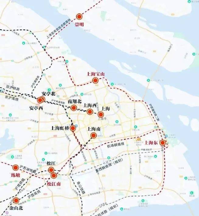 未来东方枢纽上海东站将接入沪苏通铁路二期和规划沪乍杭铁路,并可引入沪苏湖铁路、沪宁沿江高铁和上海至南京至合肥高铁等。东方枢纽上海东站还将通过上海机场联络线与上海虹桥站连接。