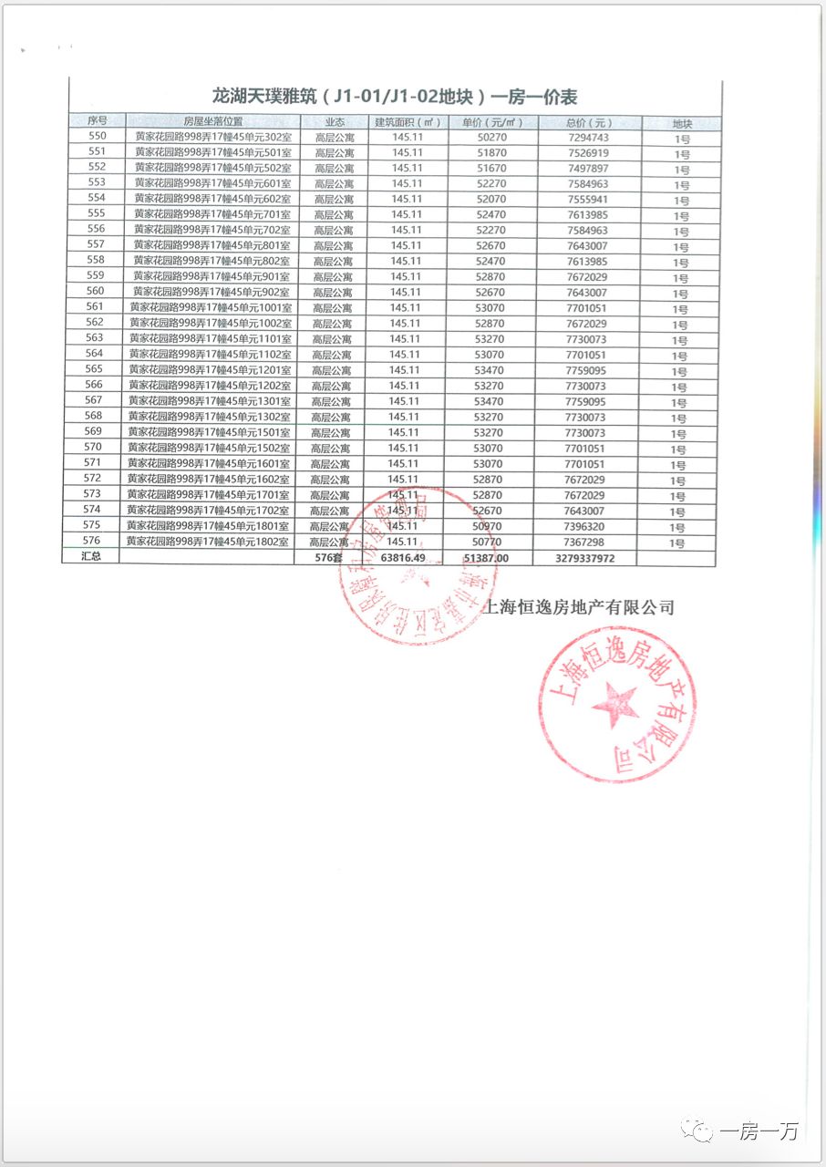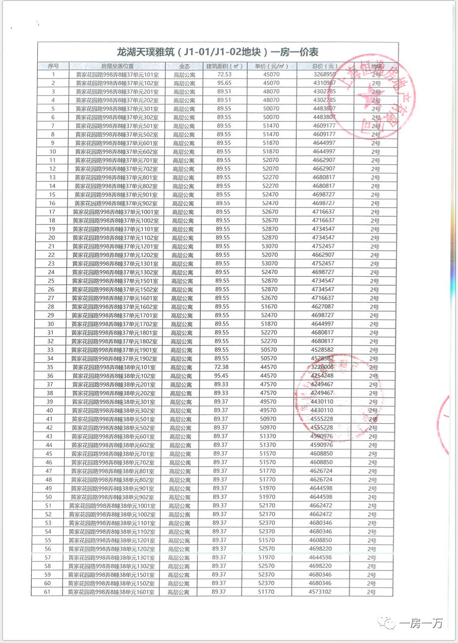 全套一房一价表: