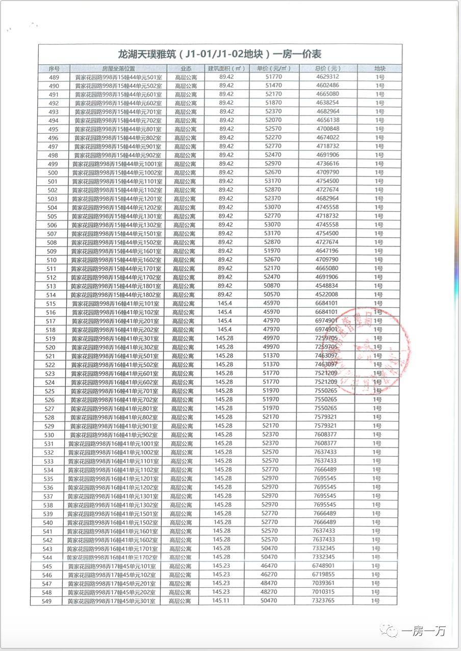 见多了一房一价表,